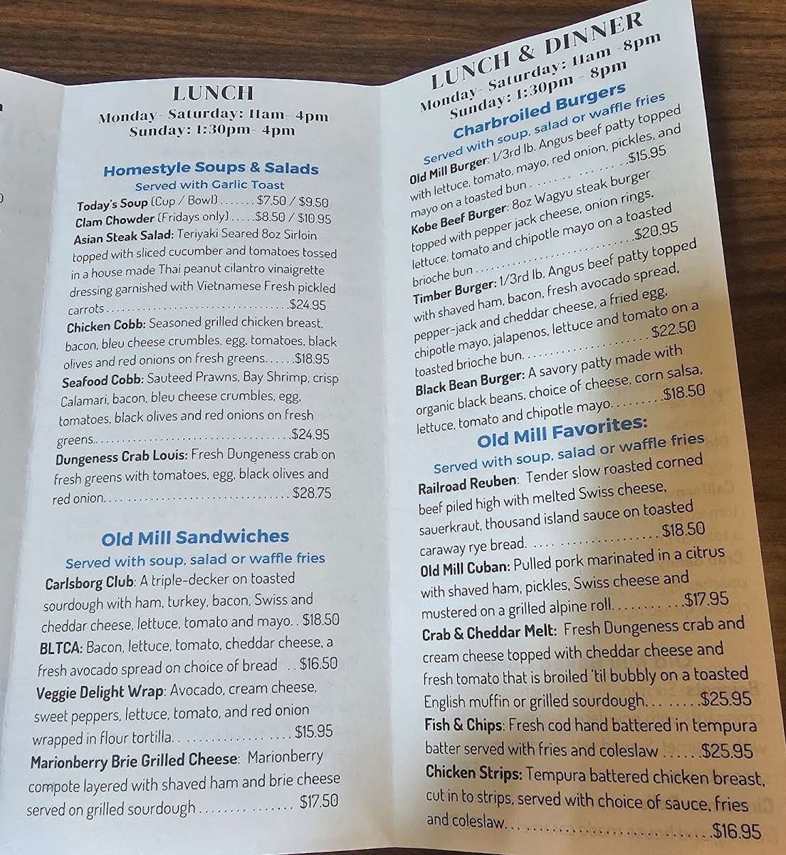 Welcome to Old Mill Cafe Sequim, a delightful gem nestled in Sequim, WA. This cozy eatery offers a menu that perfectly captures the essence of hearty comfort food. From the Chicken Fried Steak that guests rave about—tender and expertly smothered in a rich gravy—to the refreshing Lobster Roll and popular Fish and Chips, every dish is a celebration of flavor.